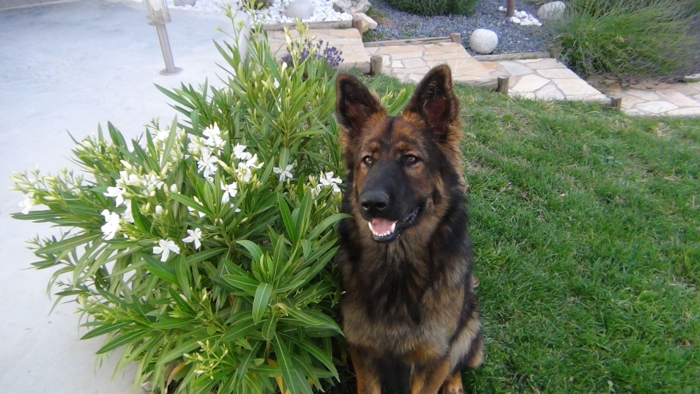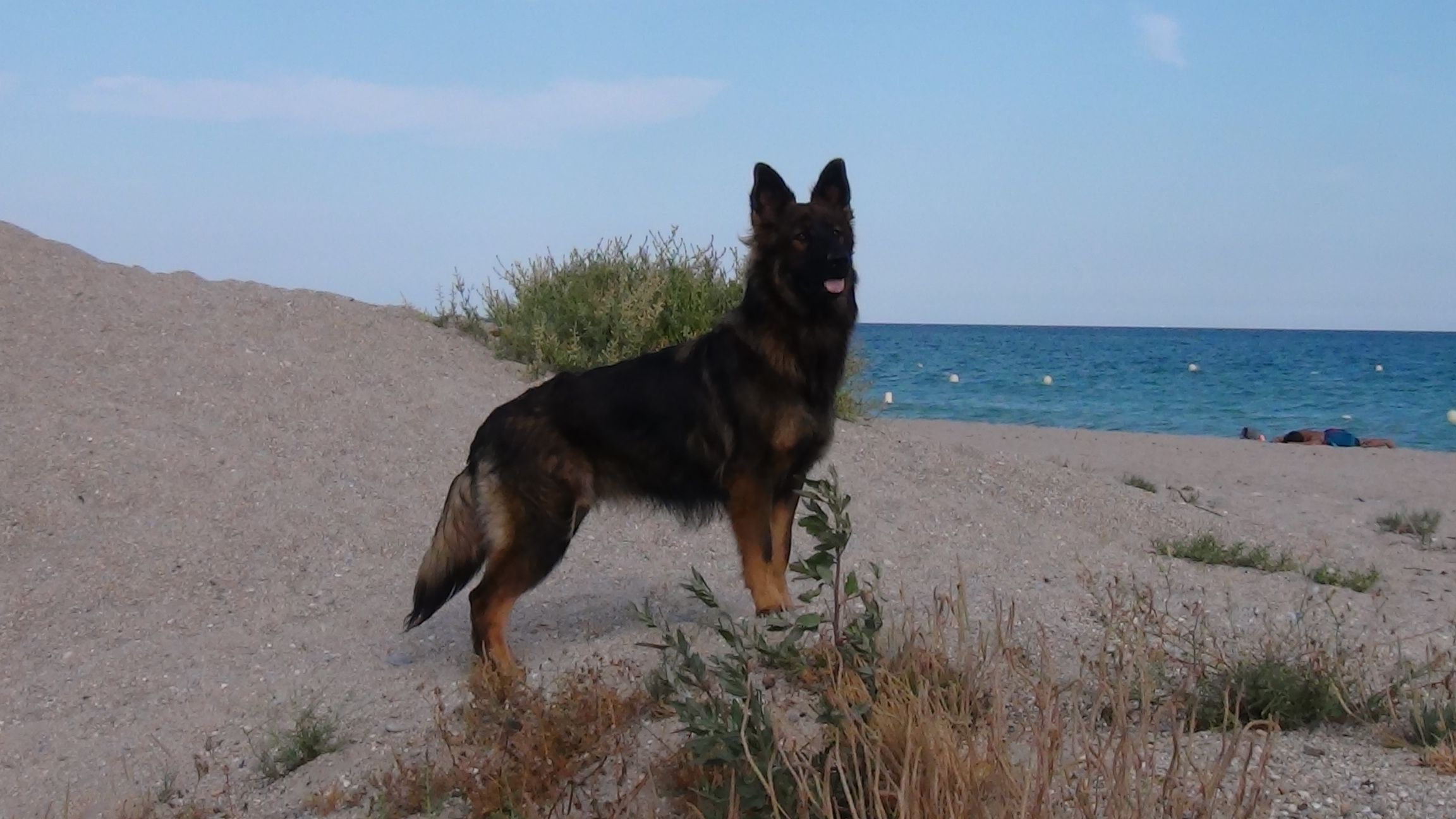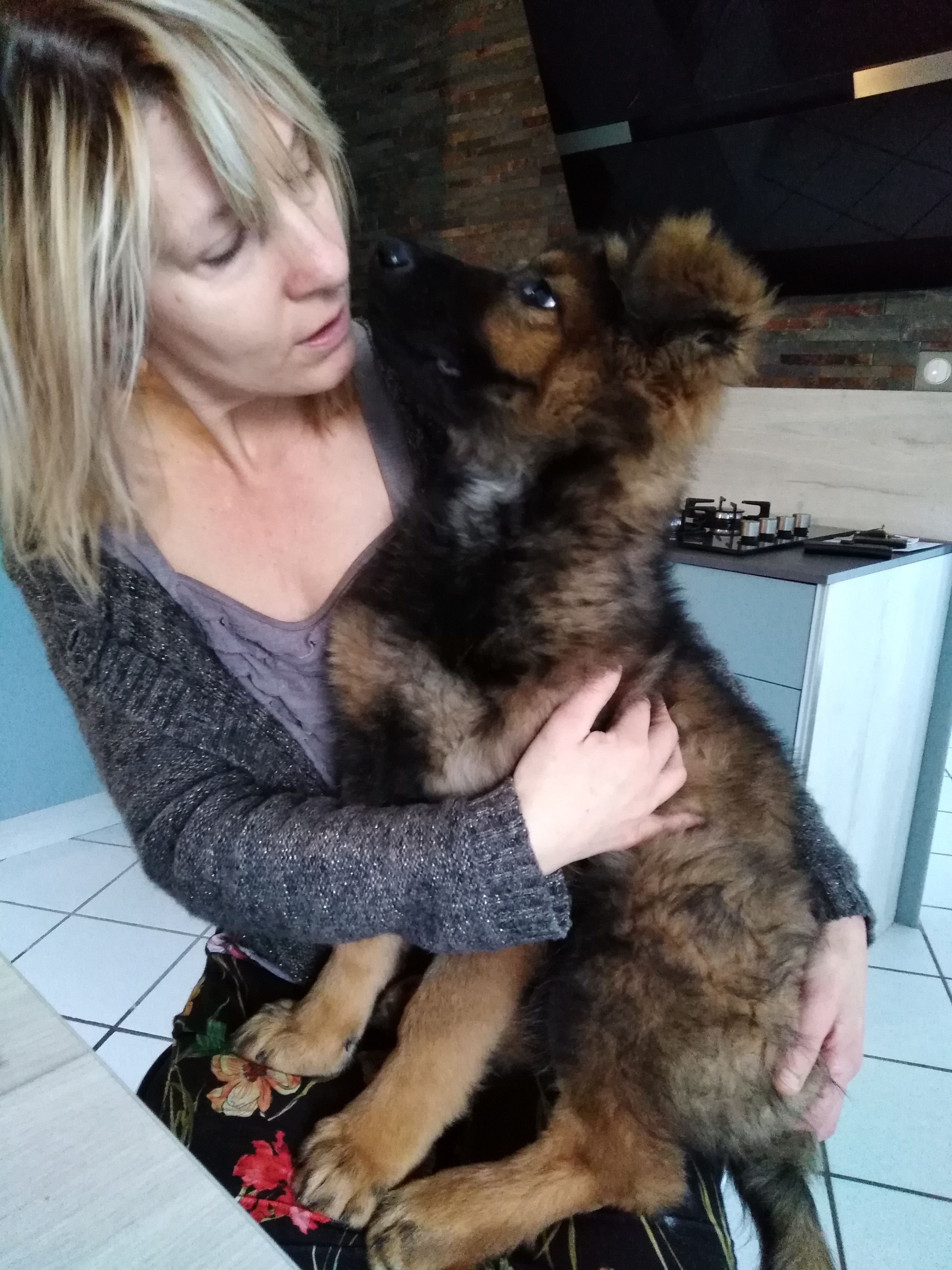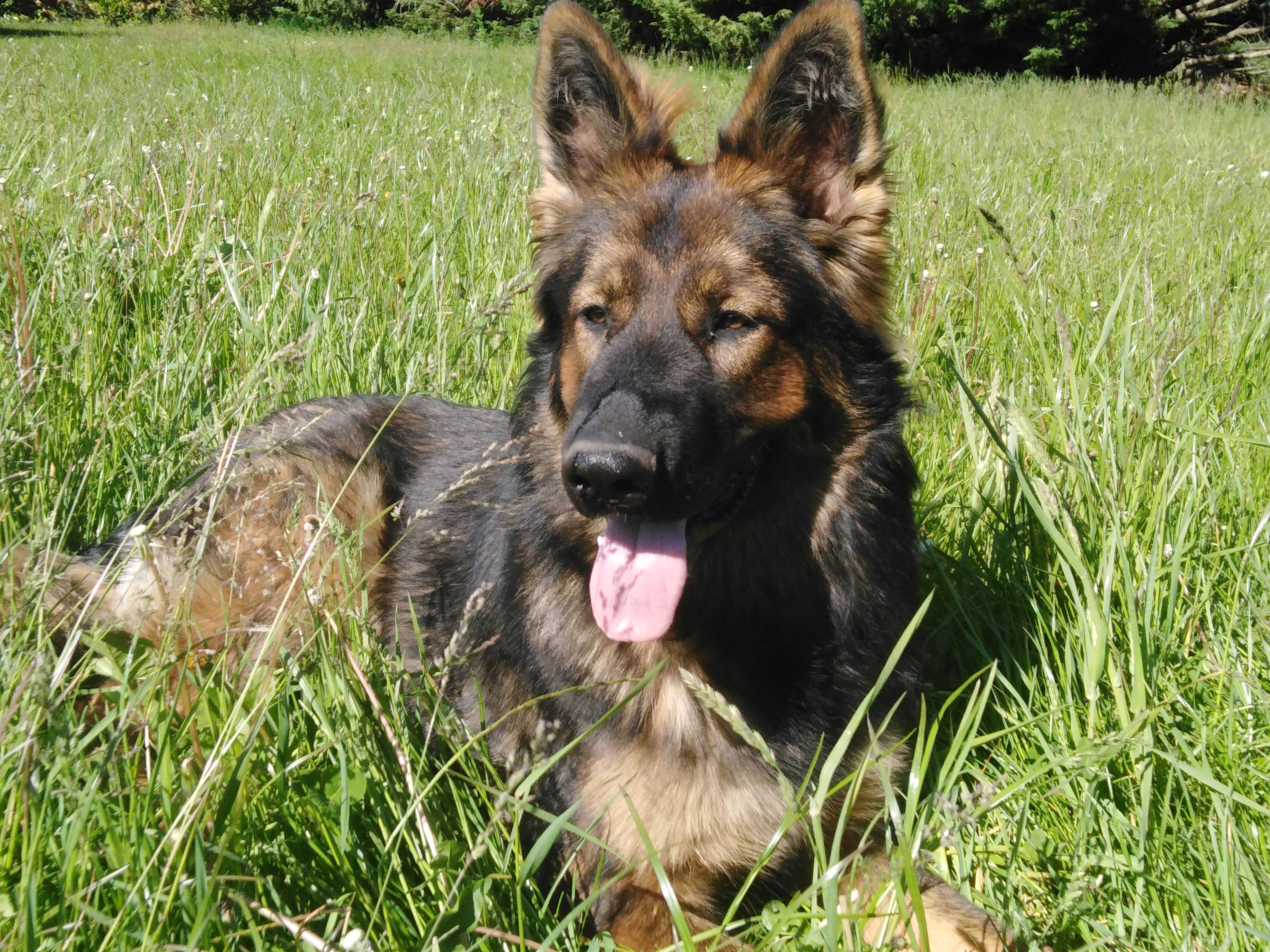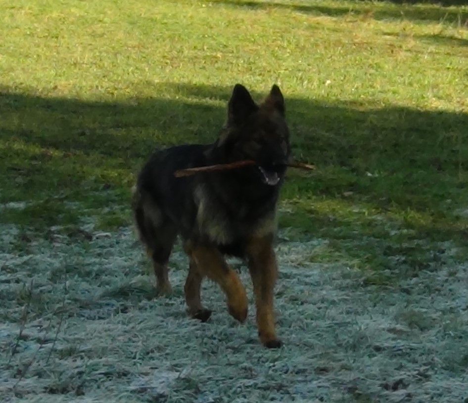 C'est une chienne à la robe et gabarit rare en France lignée DDR. De caractère équilibré, dominante avec ses congénères mais très proche de l'homme, câline et à l'écoute. Toujours prête pour une sortie et aller courir, elle est également gourmande, calme et obéissante.
