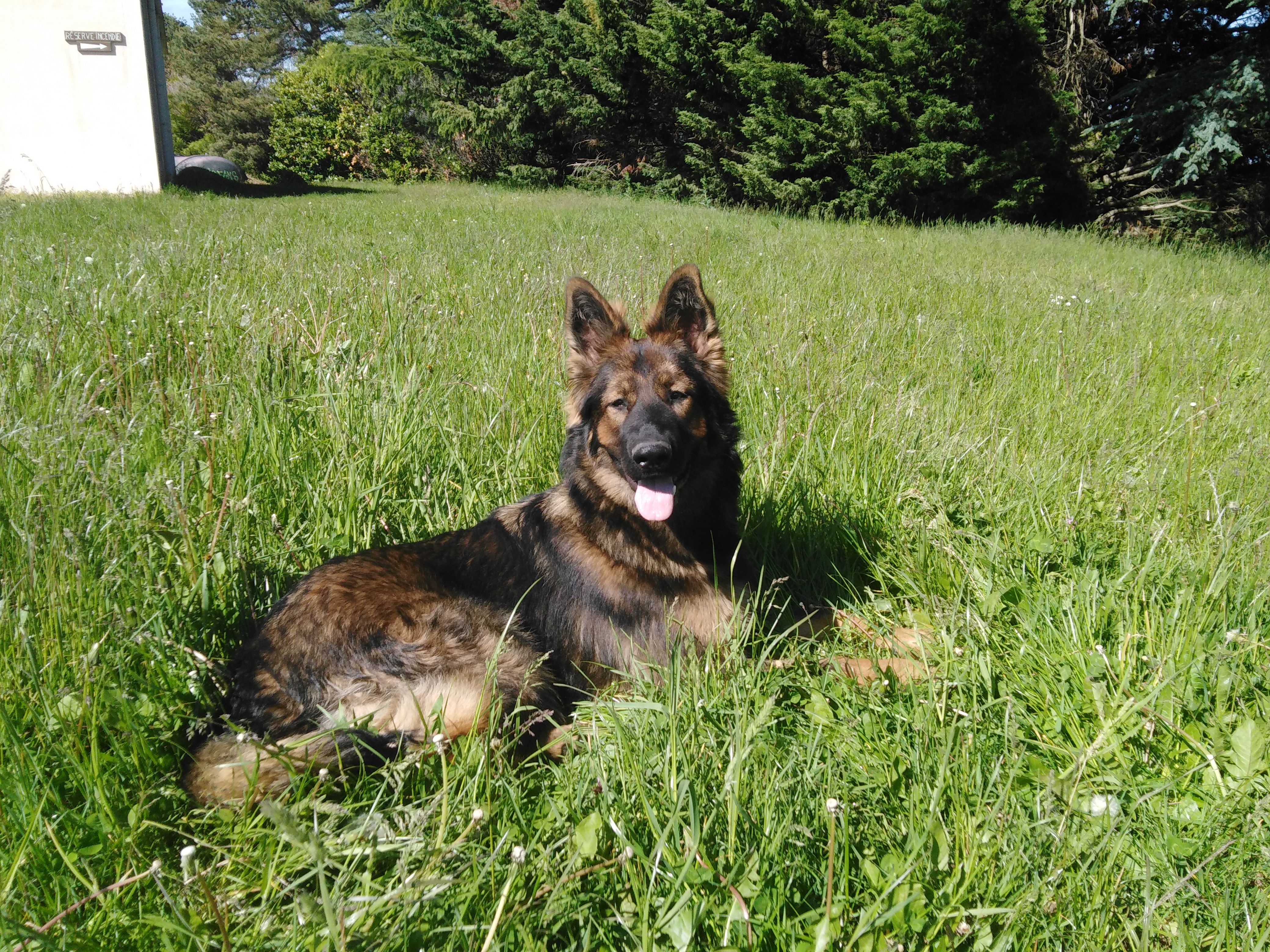 C'est une chienne à la robe et gabarit rare en France lignée DDR. De caractère équilibré, dominante avec ses congénères mais très proche de l'homme, câline et à l'écoute. Toujours prête pour une sortie et aller courir, elle est également gourmande, calme et obéissante.